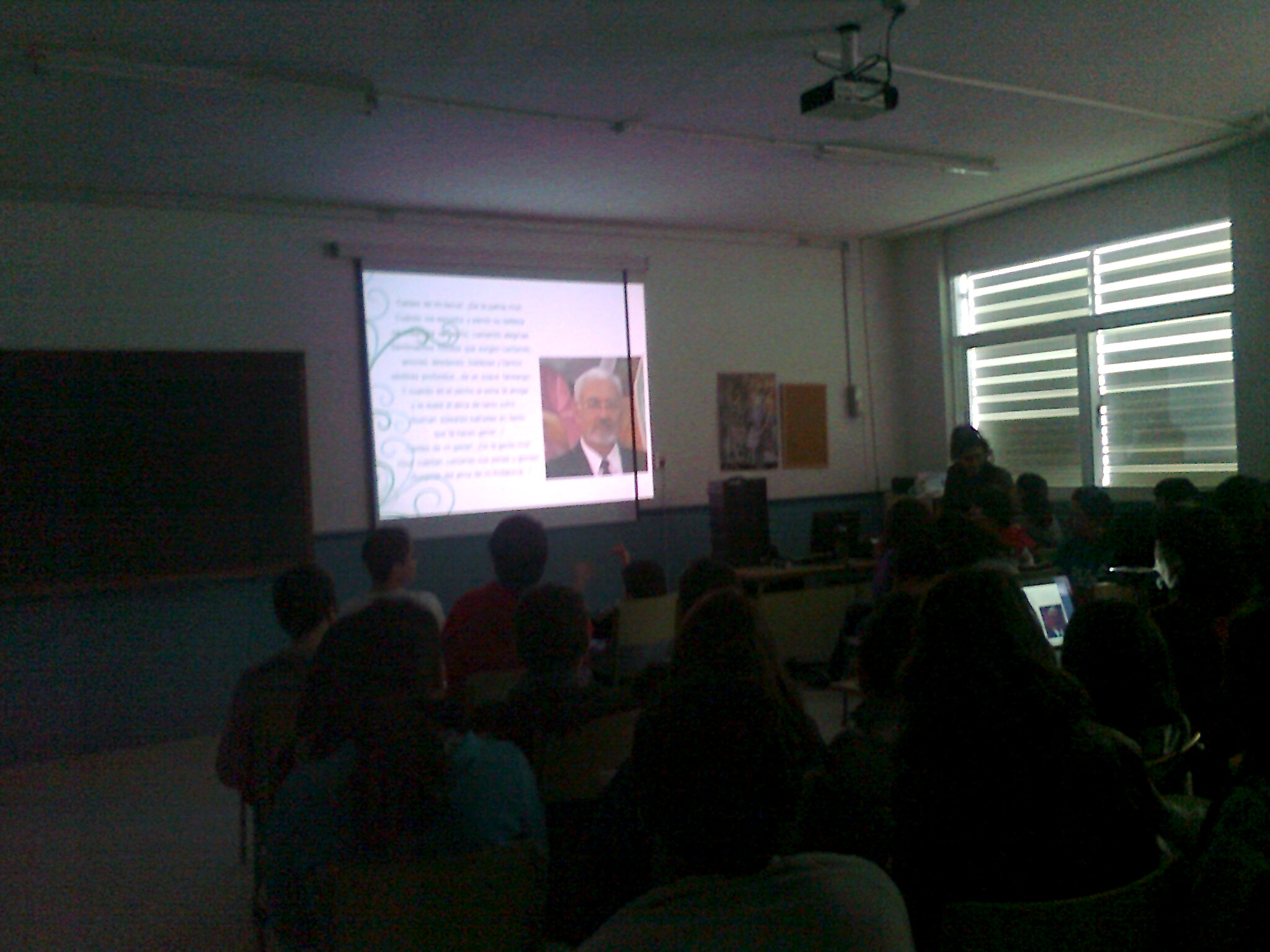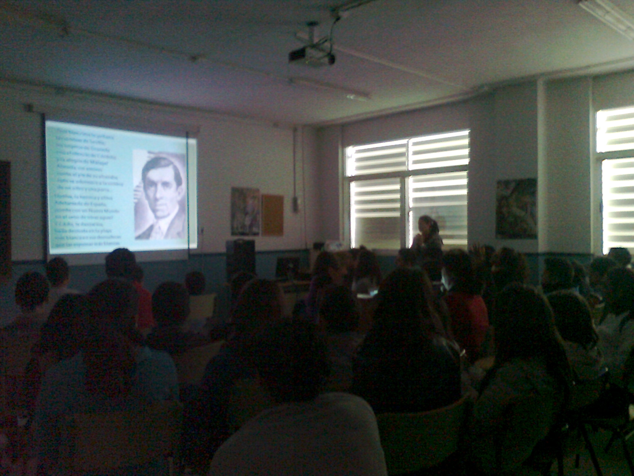 Los alumnos y alumnas de secundaria y PCPI visionaron un documental, elaborado por la profesora Doña Manuela Alcántara, sobre Andalucía vista a través de sus poetas. Los poemas fueron recitados por alumnos y alumnas.
