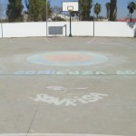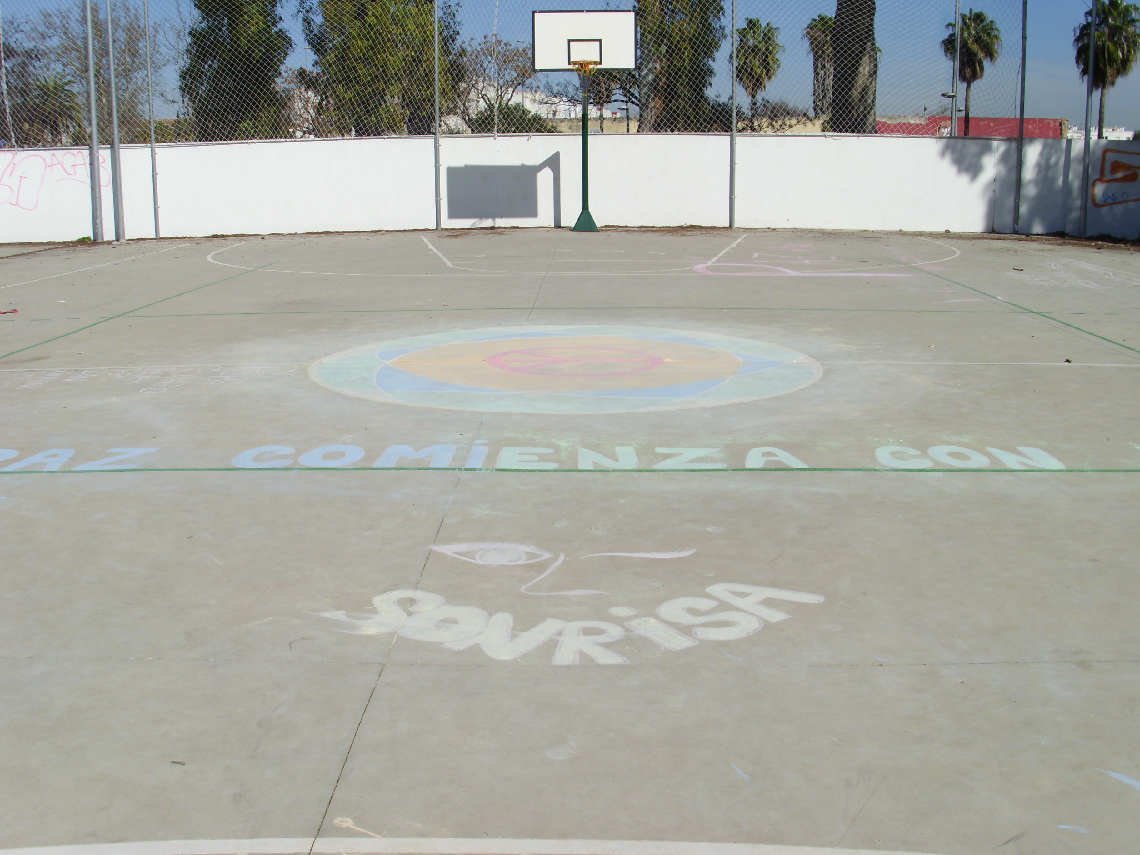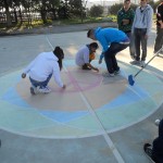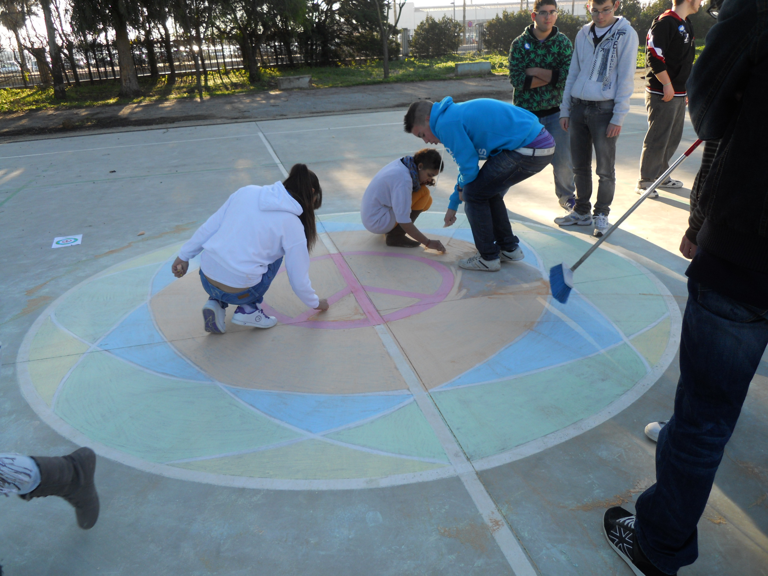· Dibujo de MANDALAS y mensajes con tizas de colores en los patios de deportes, elaborados por alumnos de 4º de E.S.O.