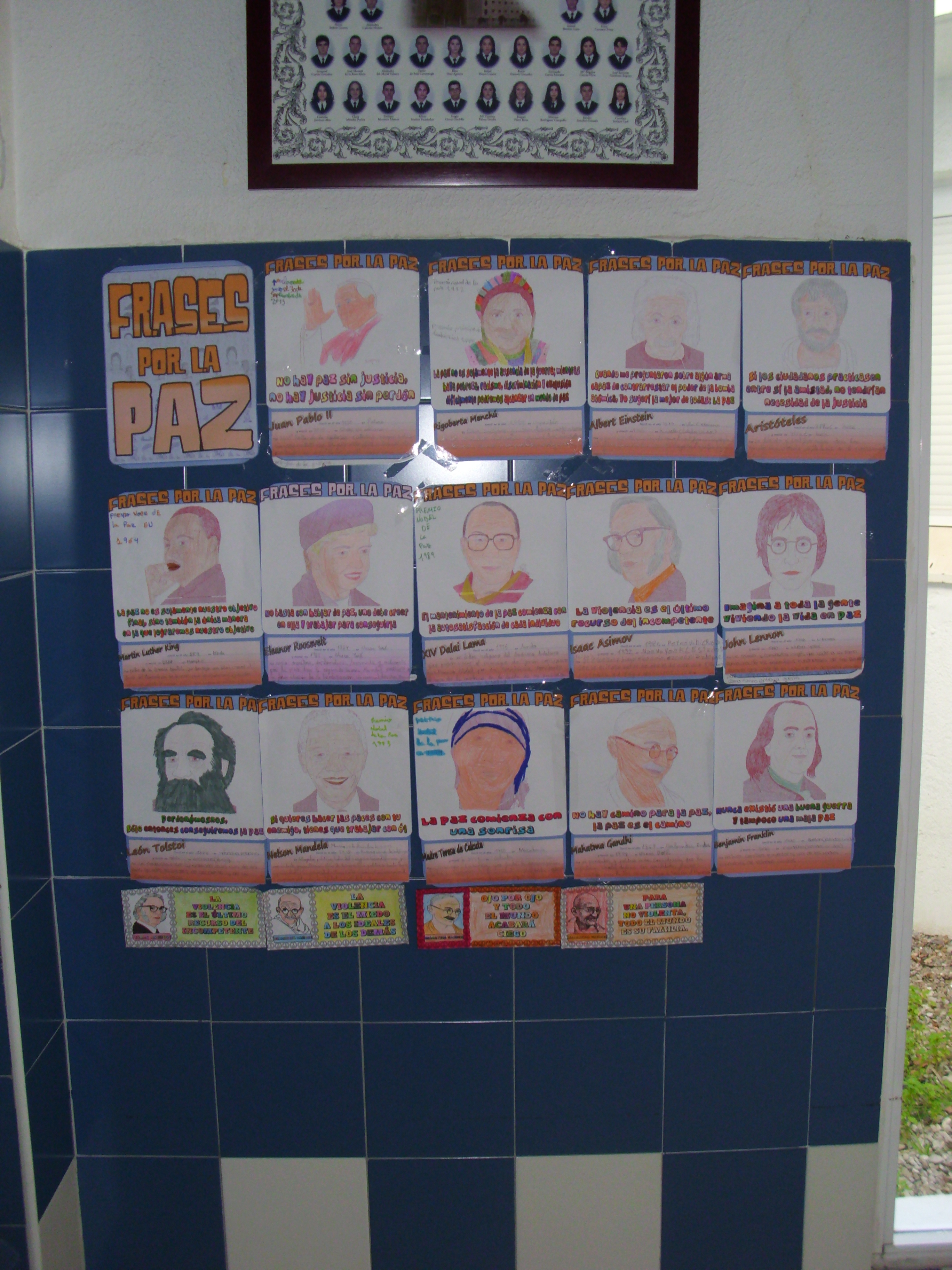 – Elaboración por los alumnos de murales alusivos al tema, así como un colorido y precioso árbol que ha sido ubicado en la entrada del instituto. Dirigidos por el grupo de profesores pertenecientes al Proyecto Escuela Espacio de Paz.