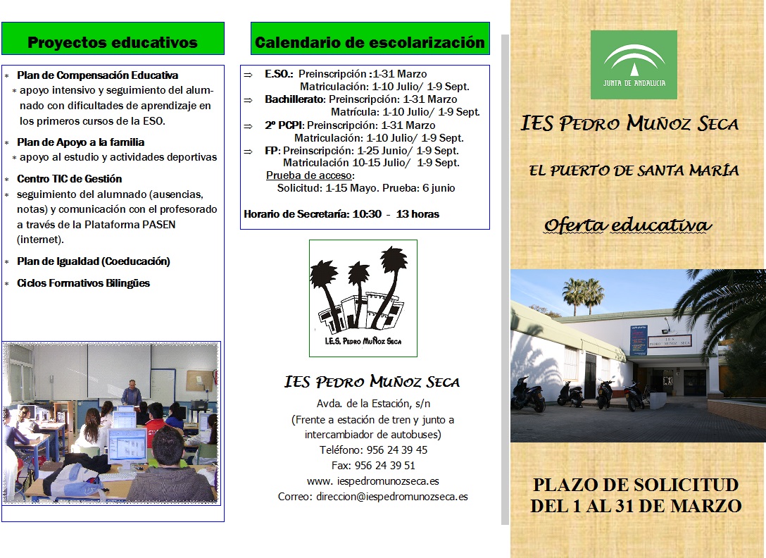Del 1 al 31 de marzo queda abierto el plazo de escolarización, curso 2014-2015, para las enseñanzas de secundaria, bachillerato y 2º de P.C.P.I.