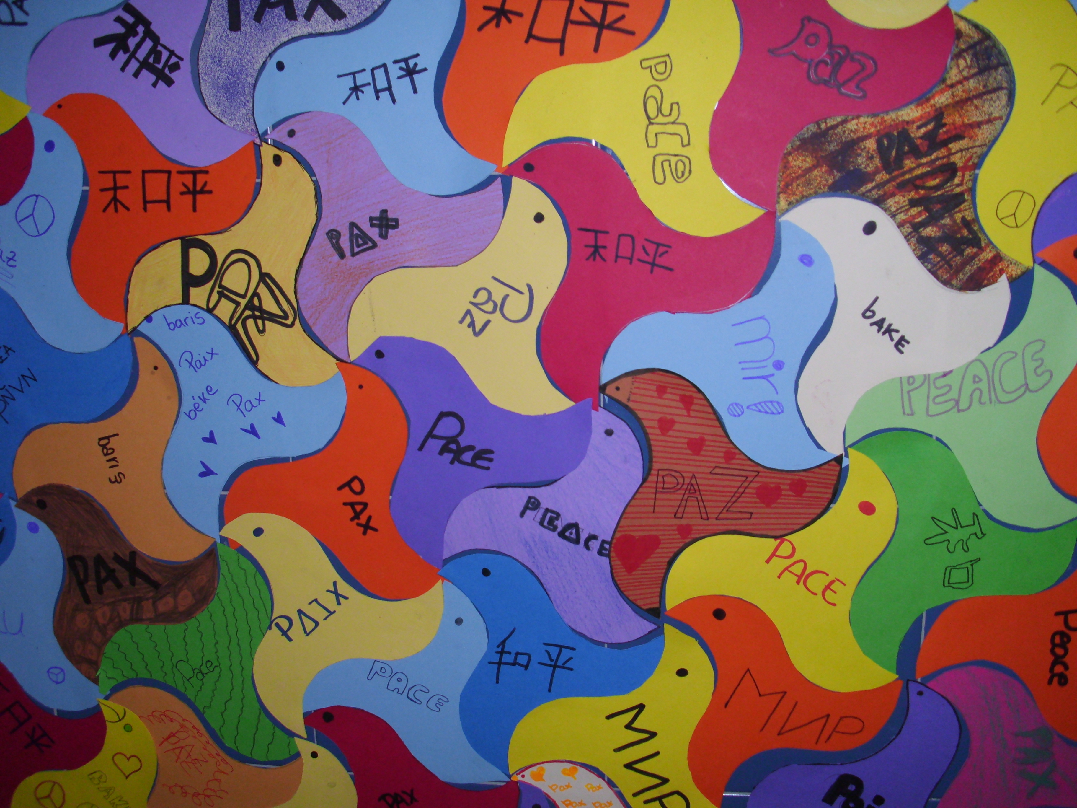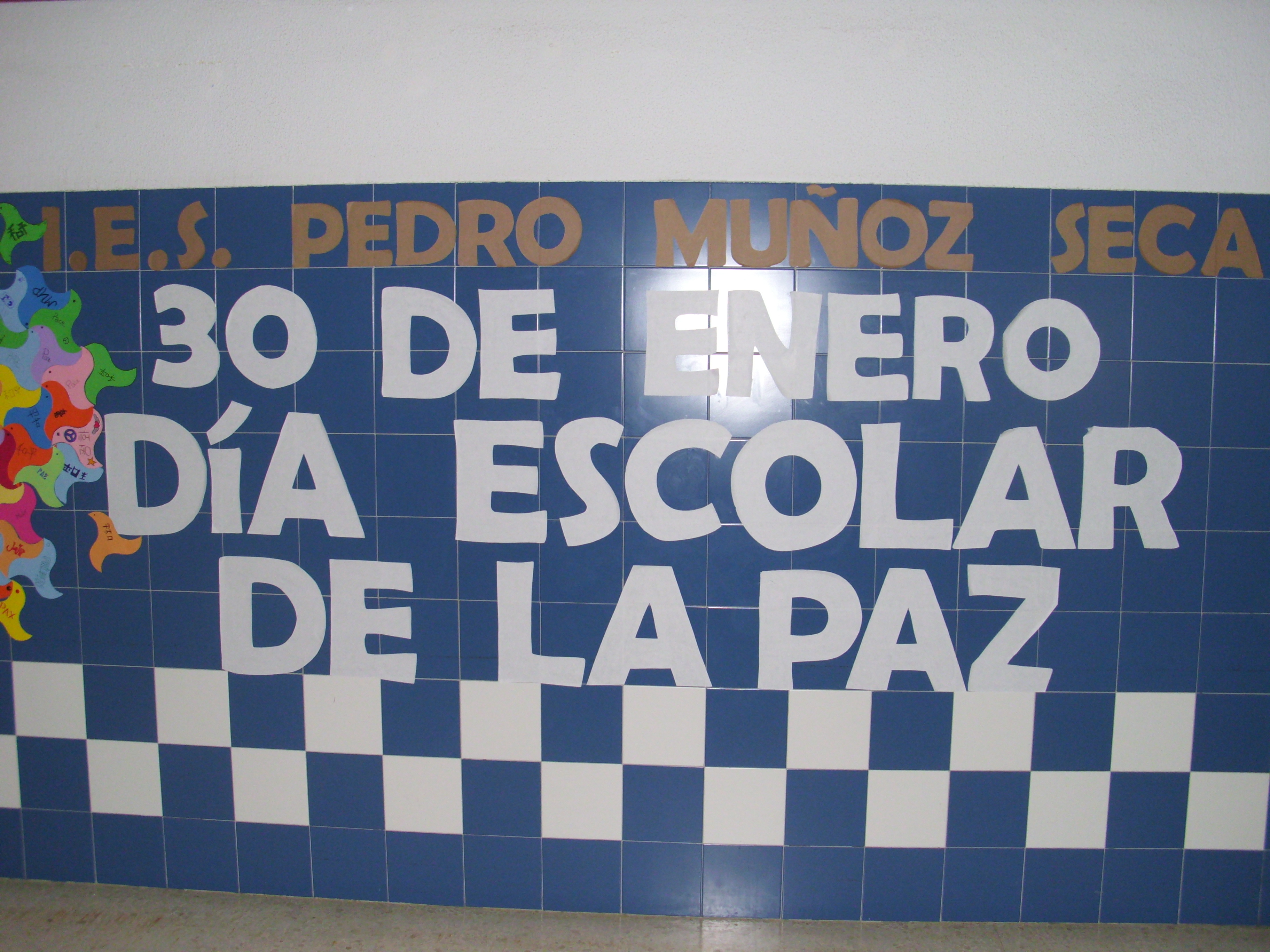 Con motivo de la celebración del Día Escolar de la Paz, todos los alumnos del centro han participado en la grabación de un Live UP. Además, los alumnos de los cursos de E.S.O. han elaborado un colorido mosaico conformado por teselas representando la paloma nazarí, decorada personalmente y con la palabra “Paz” escrita en veinticuatro idiomas diferentes.