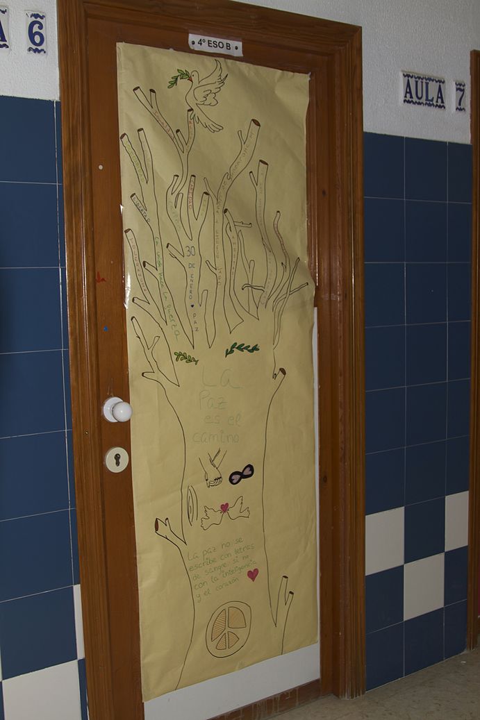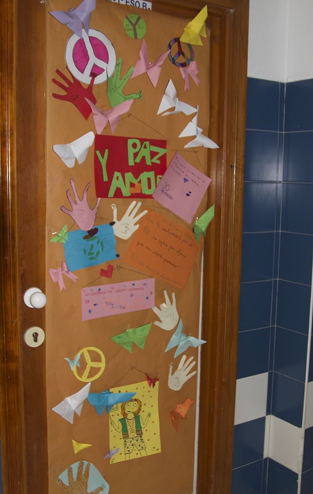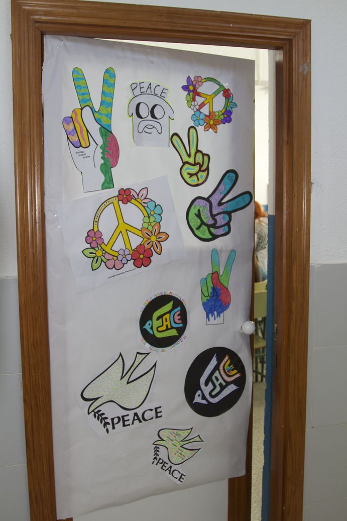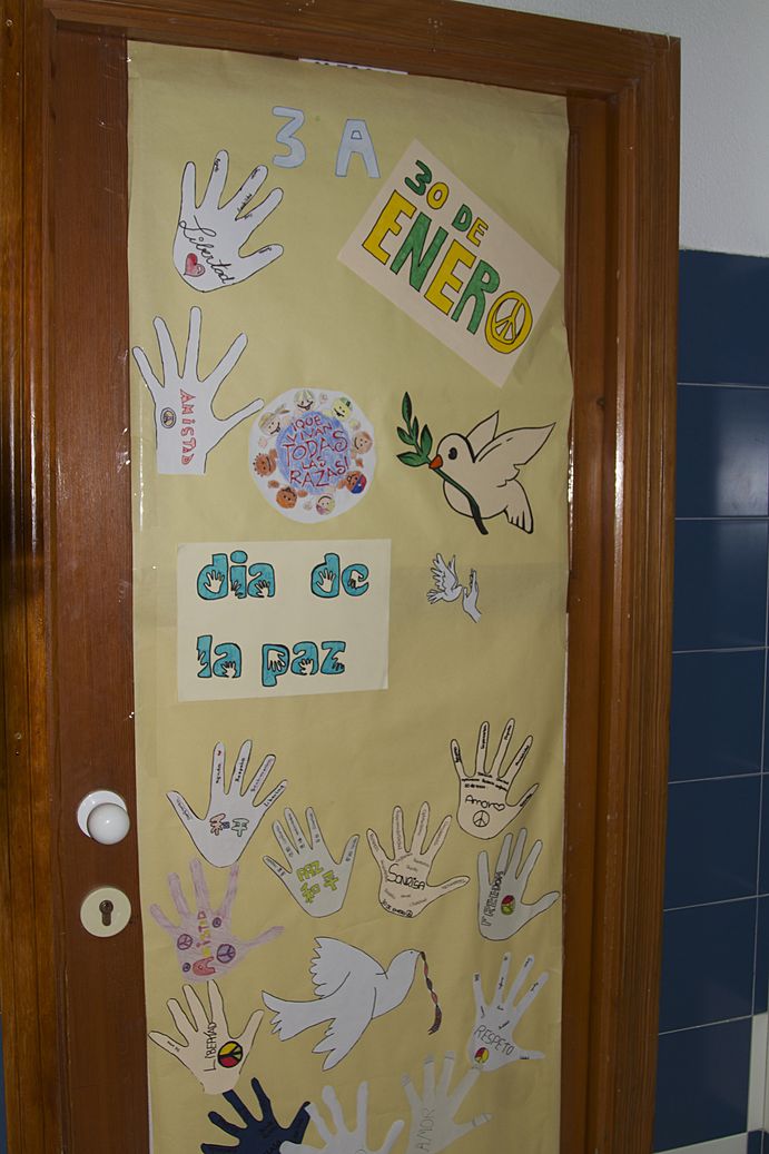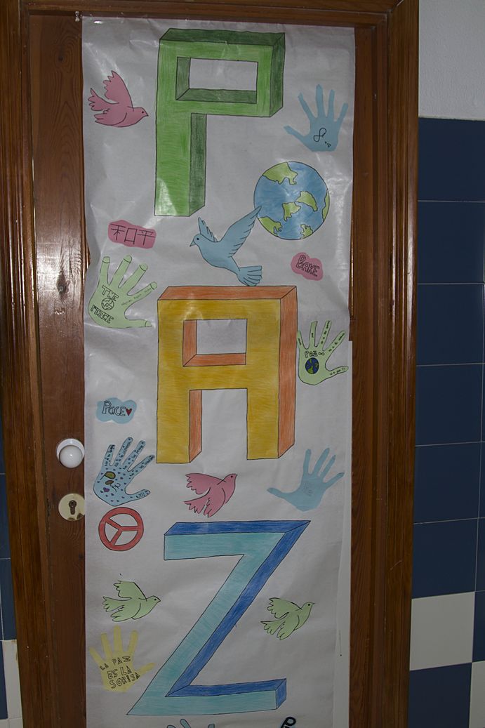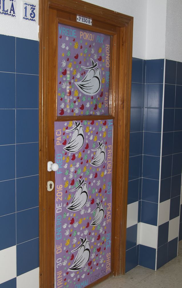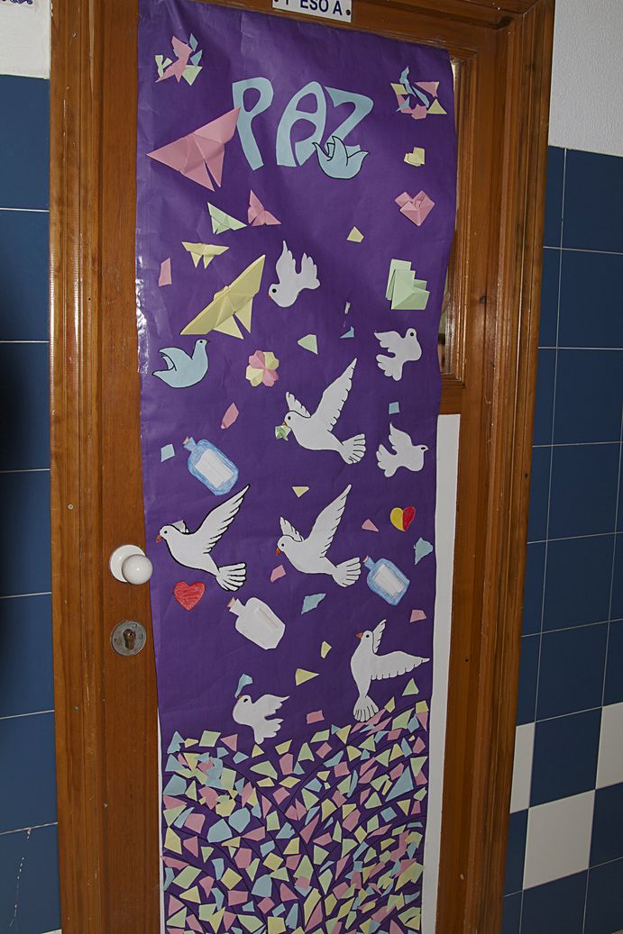 El pasado 29 de enero, viernes, celebramos por adelantado en nuestro centro el día de la Paz. Todos los alumnos del centro decoraron sus clases con este motivo y las puertas de sus aulas. Aquí tenéis una muestra de las obras de arte en que se convirtieron dichas puertas.