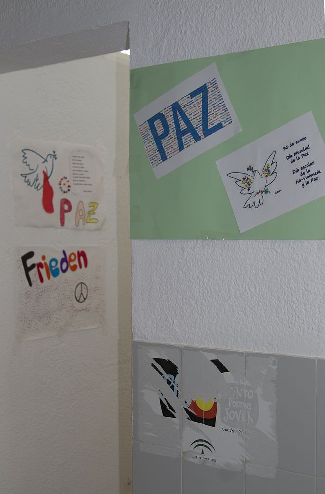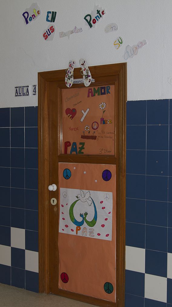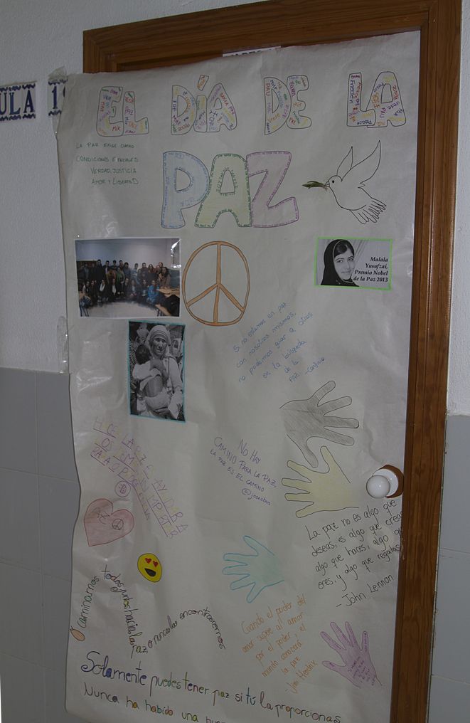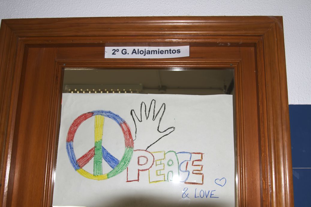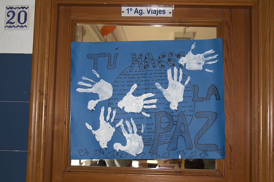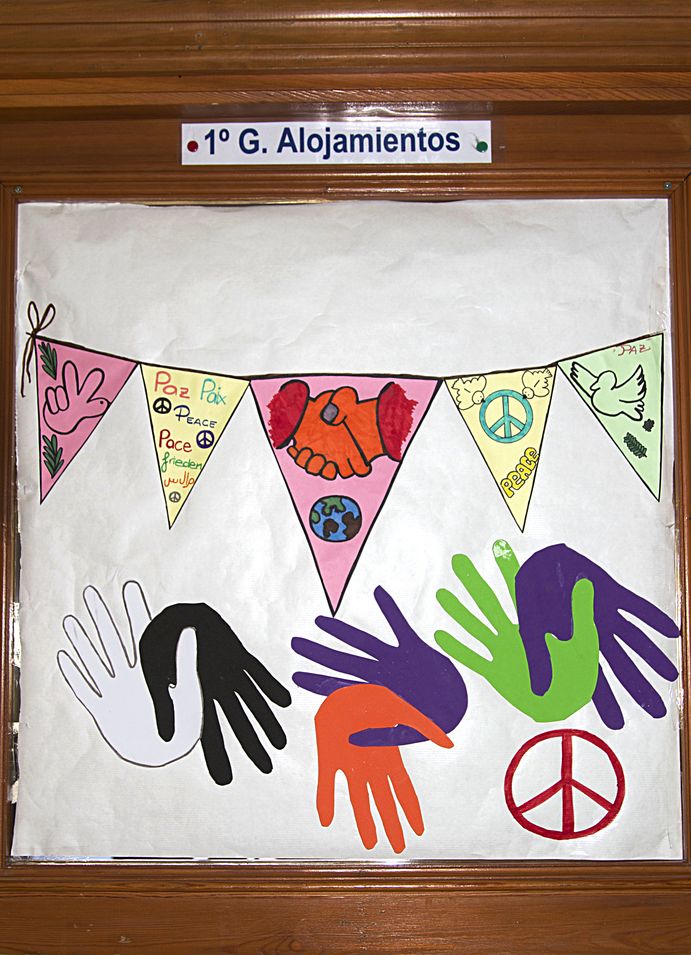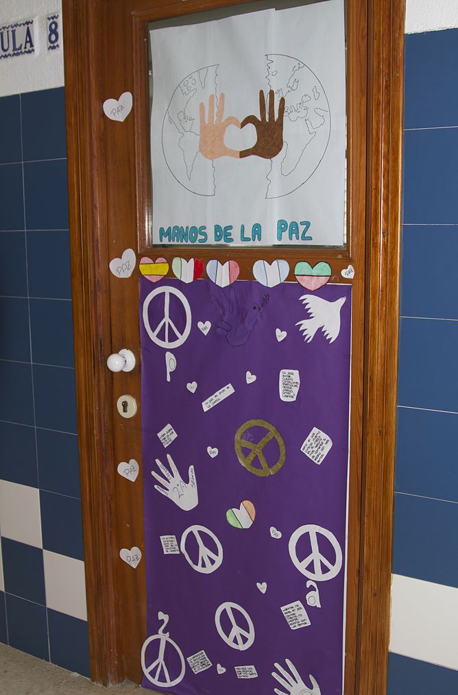 El pasado 29 de enero, viernes, celebramos por adelantado en nuestro centro el día de la Paz. Todos los alumnos del centro decoraron sus clases con este motivo y las puertas de sus aulas. Aquí tenéis una muestra de las obras de arte en que se convirtieron dichas puertas.