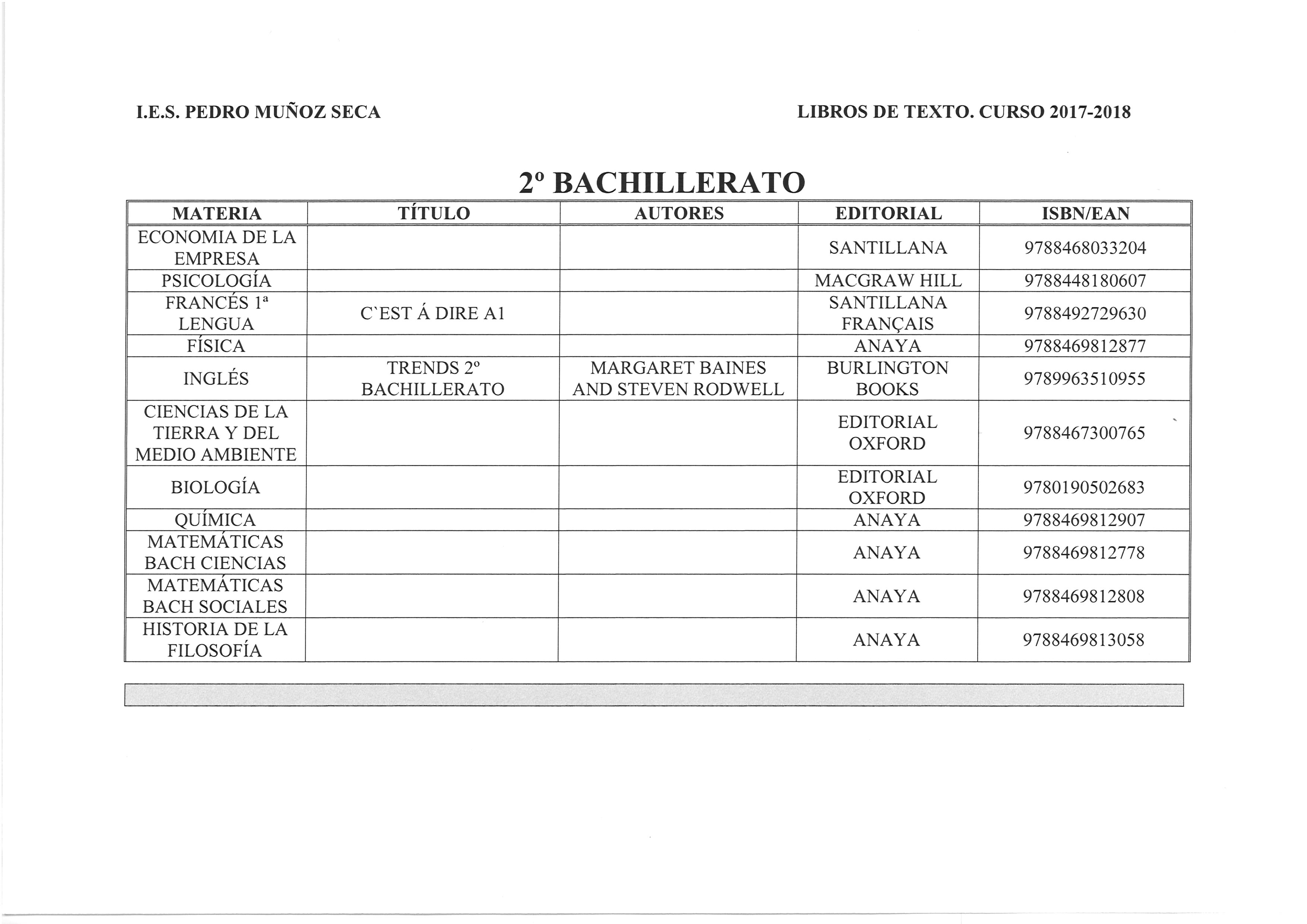 Libros de Texto curso 2017-2018. Bachillerato Libros de Texto curso 2017-2018. Bachillerato 07/07/2017 Jesus
