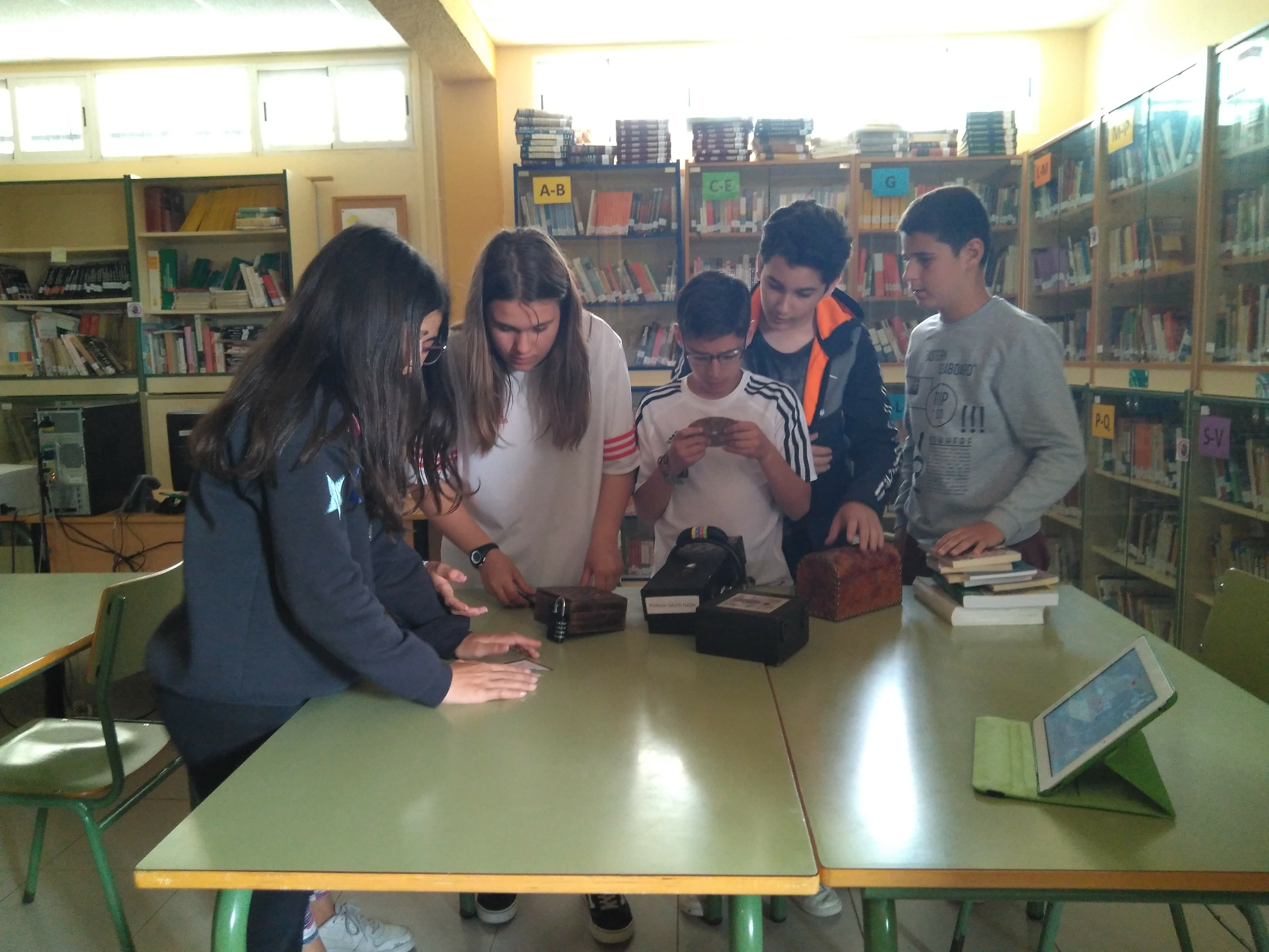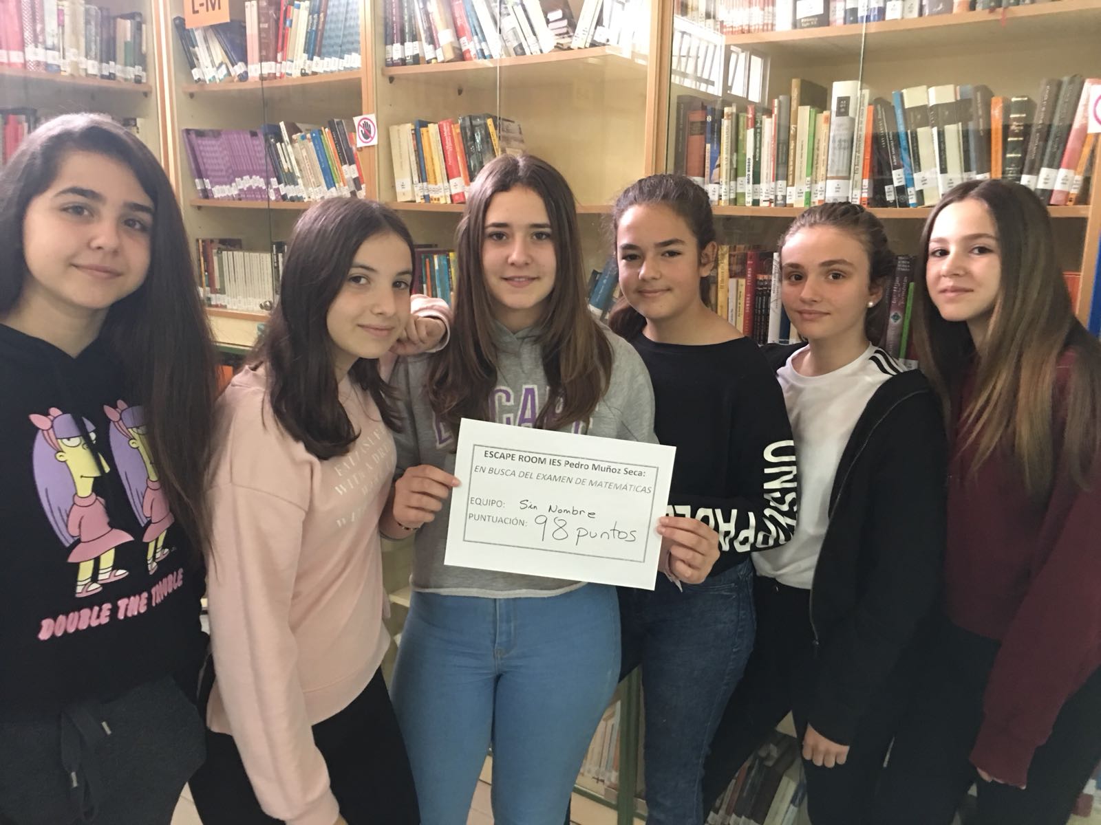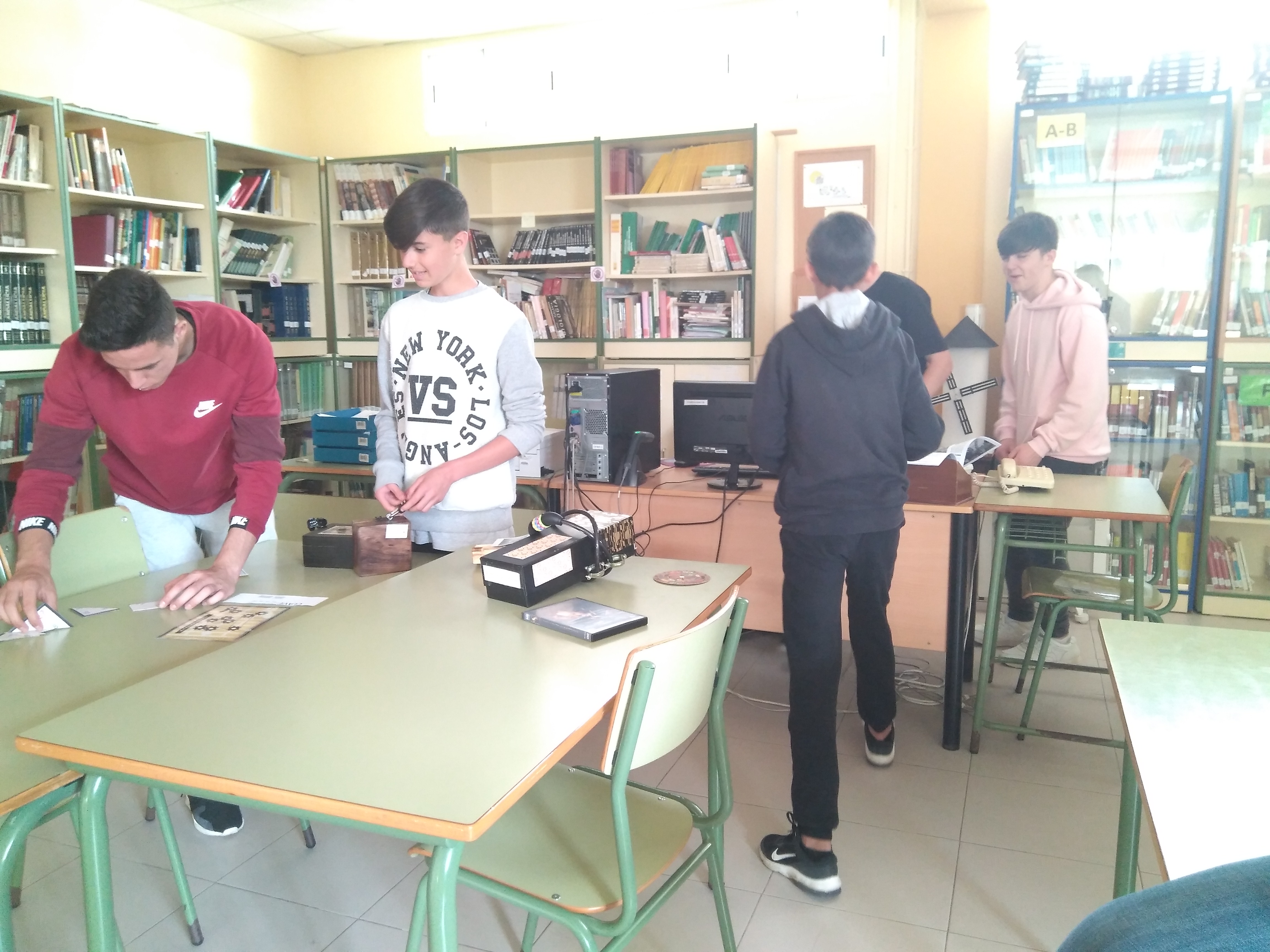 El Departamento de Matemáticas junto la profesora de compensatoria, Launa Bellido y con la coordinación de la profesora Esther Arriaza, han diseñado y llevado a cabo, esta actividad, consistente en hacerse con un examen de matemáticas y escapar de la biblioteca en un tiempo máximo de 30 minutos. Para ello, deben encontrar pistas y resolver puzzles, pruebas matemáticas, acertijos y enigmas que les irán proporcionando las claves necesarias para llegar al final. Disponen para ello de un máximo de dos pistas que, en caso de ser utilizadas supondrán una pequeña penalización en la puntuación.La puntuación final de cada equipo se calcula en función del tiempo sobrante, el número de enigmas resuelto y el número de pistas solicitadas.