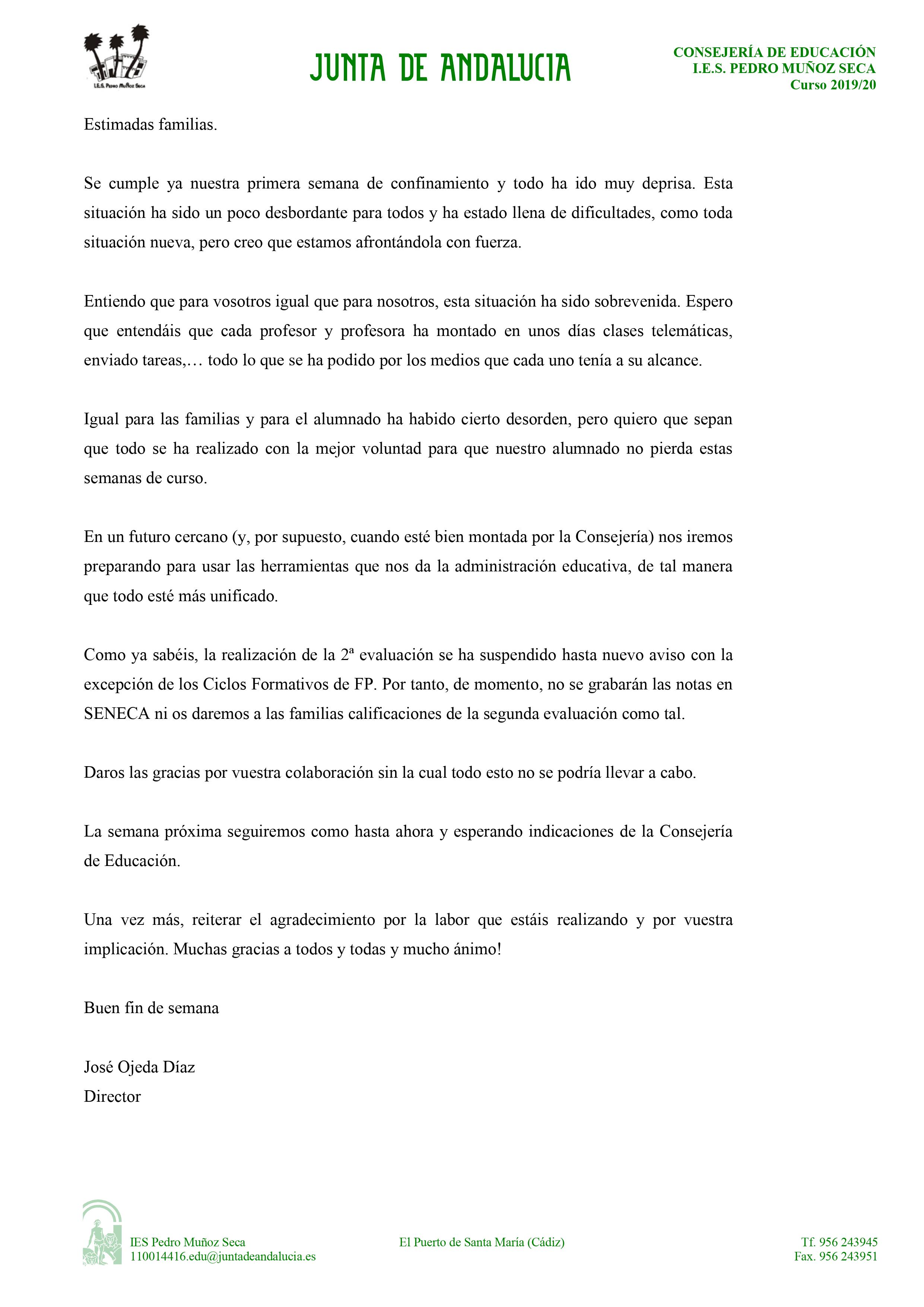 COMUNICADO PARA LAS FAMILIAS