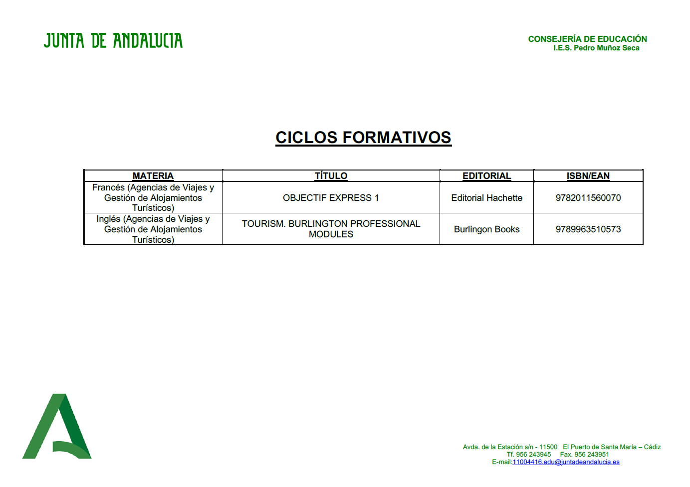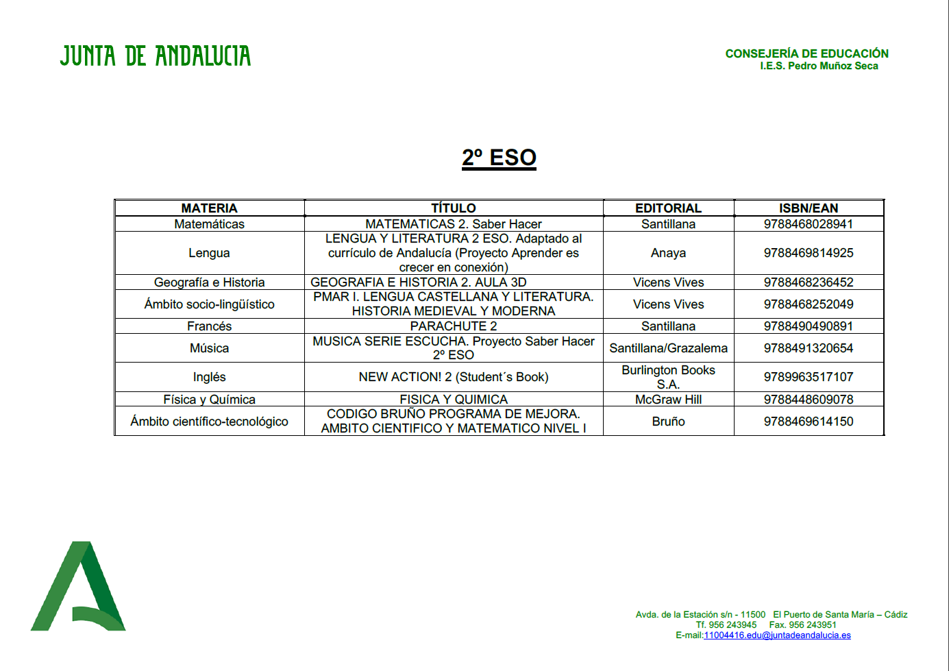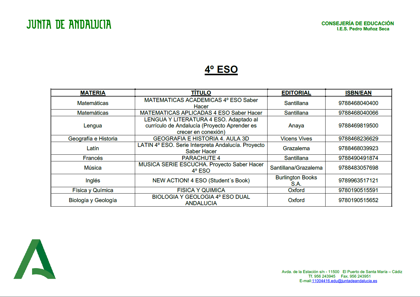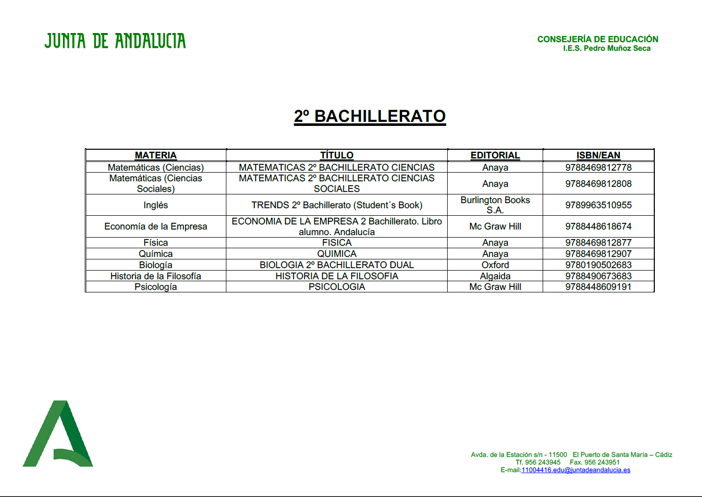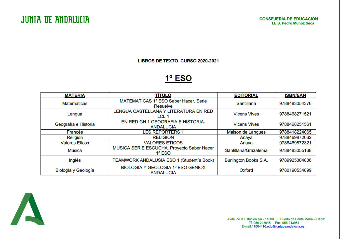 LISTADO DE LIBROS PARA EL CURSO 2020-2021